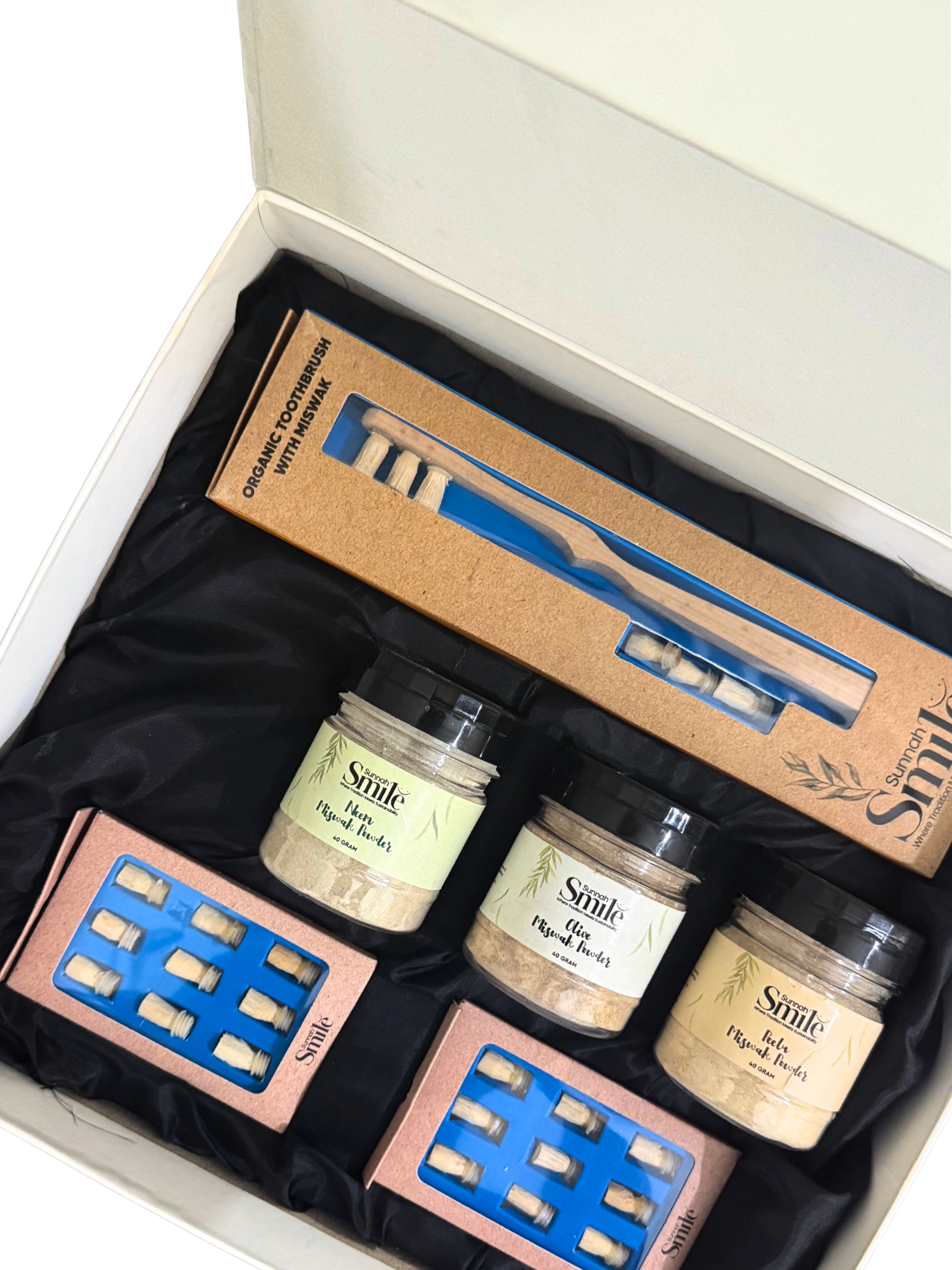 The Luxury Care Gift Box is your long-term, all-in-one solution for natural oral care. Designed for families or individuals who want more value and extended use.